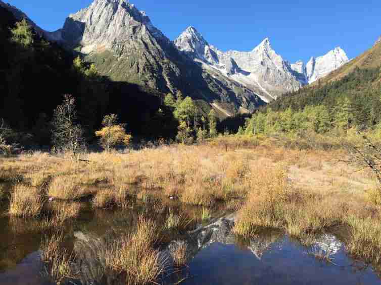 四姑娘山,長(zhǎng)坪溝和雙橋溝是四姑娘山主要的景區(qū)之一,也是秋季觀賞紅葉的好去處。尤其是秋葉紅遍溝內(nèi)溝外時(shí),漫山遍野的紅葉與四姑娘山凜冽雄偉的雪峰交相輝映,五彩斑斕,宛若仙境。