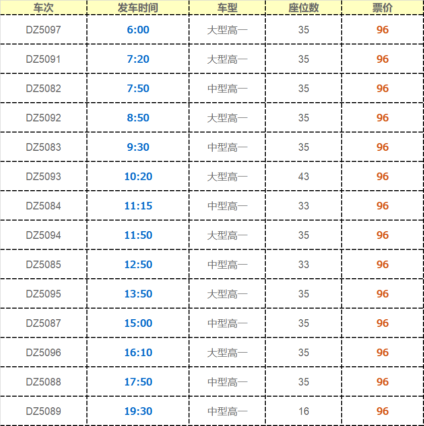 注:受疫情影響,部分班次還在調整中具體發車時間請以售票系統為準!