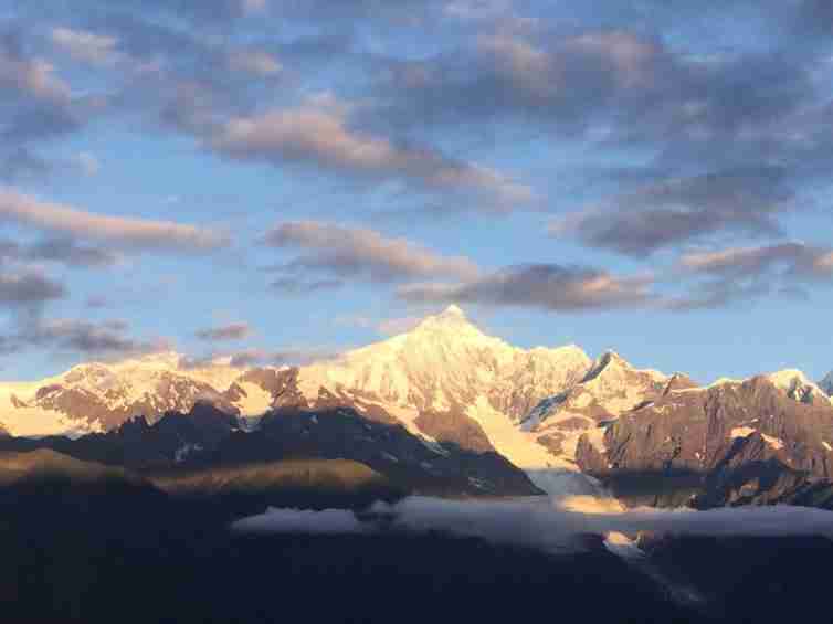 既有高原的壯麗,又有江南的秀美,在雪山之巔,云霧在寧靜地流淌,在雪山腳下,冰川在寧靜地流淌,在雪山深處,江水在寧靜地流淌,不同的節奏韻律,同樣的賞心悅目。