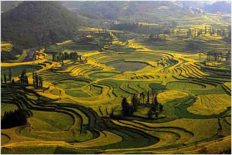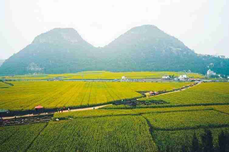 云南羅平這里80萬畝的油菜花,在每年1月開放,是全國花期最早的地方,開花期間整個羅平和周邊的山區成為黃色的世界,當油菜花開放在喀斯特峰林之間,綠色的山峰、黃色的油菜,便構成了一副很別致的風貌!最后爬個小山來到觀景點,拍上兩張全景照,你才能真正明白金黃和喀斯特地貌峰叢的完美結合。