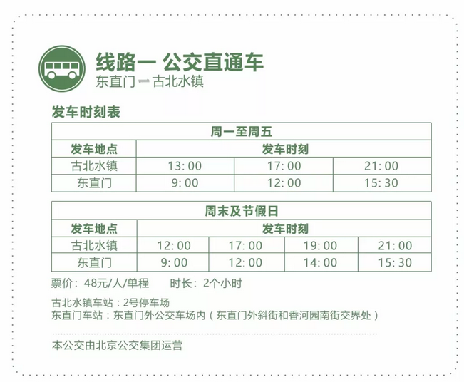 ①東直門公交樞紐—980路公交或980路(快)公交—密云西大橋—密51路公交車(司馬臺(tái)方向)—古北水鎮(zhèn)