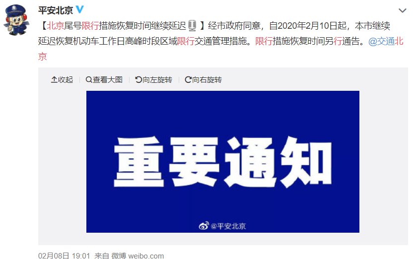 最新消息:經(jīng)市政府同意,自2020年2月10日起,本市繼續(xù)延遲恢復(fù)機(jī)動(dòng)車工作日高峰時(shí)段區(qū)域限行交通管理措施。限行措施恢復(fù)時(shí)間另行通告。