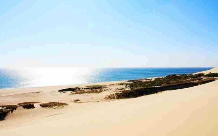 島上沙山連綿起伏,造型優美,陡緩交錯,由于這里獨特的自然地理環境,形成了國內獨有、世界罕見的海洋大漠風光。特有的海洋大漠風光吸引著無數的旅游者。據傳由天空鳥瞰,這里海水的顏色反射出翠綠色,半島三面環海,被包裹其中,故取名“翡翠島”。這里沙細、濰緩、水清、潮平,沒有受到任何污染,是生態旅游的最佳地點。島上是鳥類的王國,是“世界珍禽”黑嘴鷗的主要棲息繁殖地之一,也是我國文昌魚分布密度最高的地區之一。