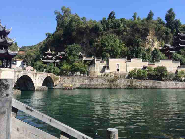 閑逛打發(fā)時間鎮(zhèn)遠冬天的景色雖然稍比春夏遜色但同樣也很美清澈的舞陽河靜靜地流動著幾只小船為這景色增添了幾分色彩。