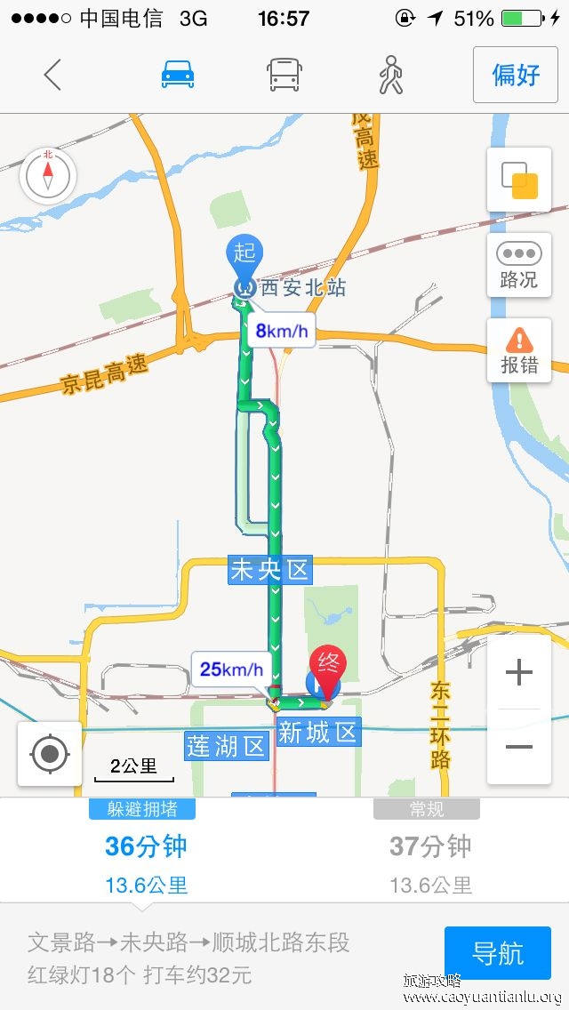 總路程需1小時,即可從西安北站到達西安火車站啦。