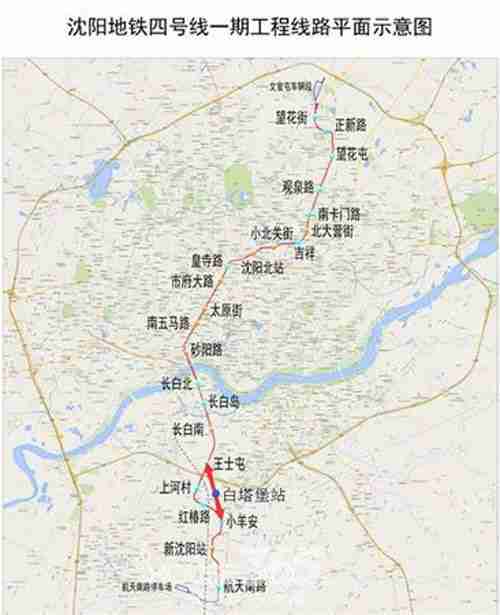 沈陽地鐵4號線北起虎石臺,南至新沈陽南站,全長約41公里,分一期工程、二期工程建設。