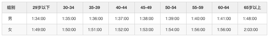半程馬拉松精英選手成績標(biāo)準(zhǔn)如下: