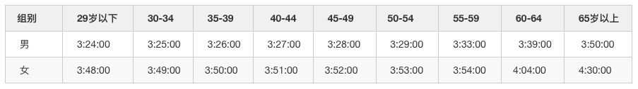 馬拉松精英選手成績標(biāo)準(zhǔn)如下: