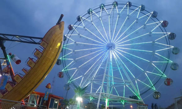 樂翻天嘉年華游樂場位于奎屯市天北新區(qū)中心公園護城河北側,是奎屯市唯一的大型游樂場。項目有高空飛翔、摩天輪、大擺錘、狂呼、高空攬月、神州飛碟、迪斯科轉盤、海盜船、鬼屋、體能樂園、兒童樂園等。