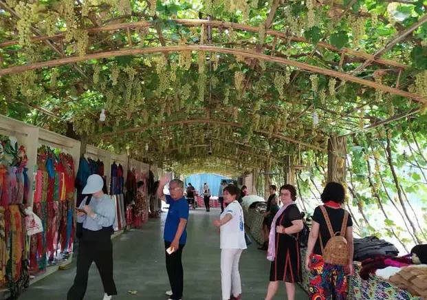 百年葡萄莊園位于奎屯市西郊15公里處,131團一連,占地50畝。百年葡萄莊園簡稱“百葡莊園”,始建于1868年,距今已有140余年的歷史,是清末年間一袁姓、甘肅籍莊主途經(jīng)哈密購買的葡萄苗、紅棗苗、海棠樹苗栽種的莊園。當時稱“袁家莊子”,現(xiàn)園內四棵喀什葛爾葡萄樹是當年栽種的,現(xiàn)樹根部直徑0.6米,主蔓藤分植9墩,年產葡萄約8噸,是新疆的葡萄王之一,也是該園的標志性景觀。2005年12月,莊園被國家旅游局評定為“全國農業(yè)旅游示范點”。