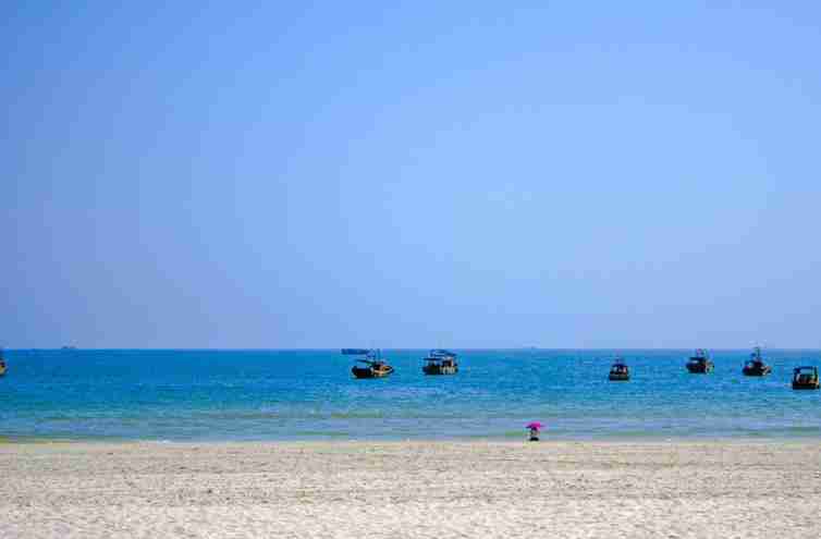 北海銀灘在北海市南端,面臨浩瀚的藍色大海,1992年列為國家級旅游度假區,為中國的35個“王 牌 景點”之一,享有“天下~第一灘”的美譽。赤腳走在潔白、細密、松軟的沙灘上,剛出生的小螃蟹似乎太過羞澀,沒等走進就爬回洞里。走在海邊,沒有涉足踏進那深色的海灣,生怕破壞這迷人的景象。蔚藍色的海洋,潮水進退中泛起團團白色的浪花。仔細看過去,那只是廣闊的大海之一角,浪花與陽光互相挑逗,一片美好幸福的時刻。