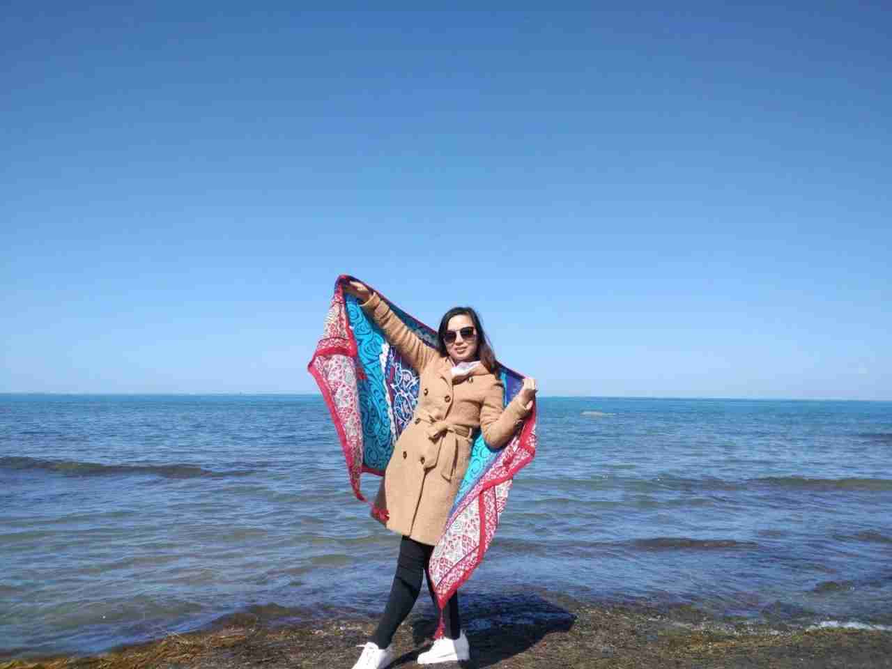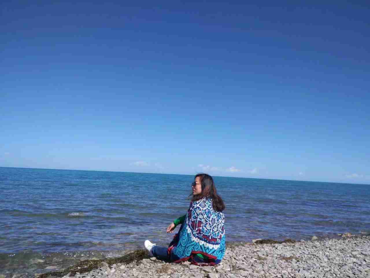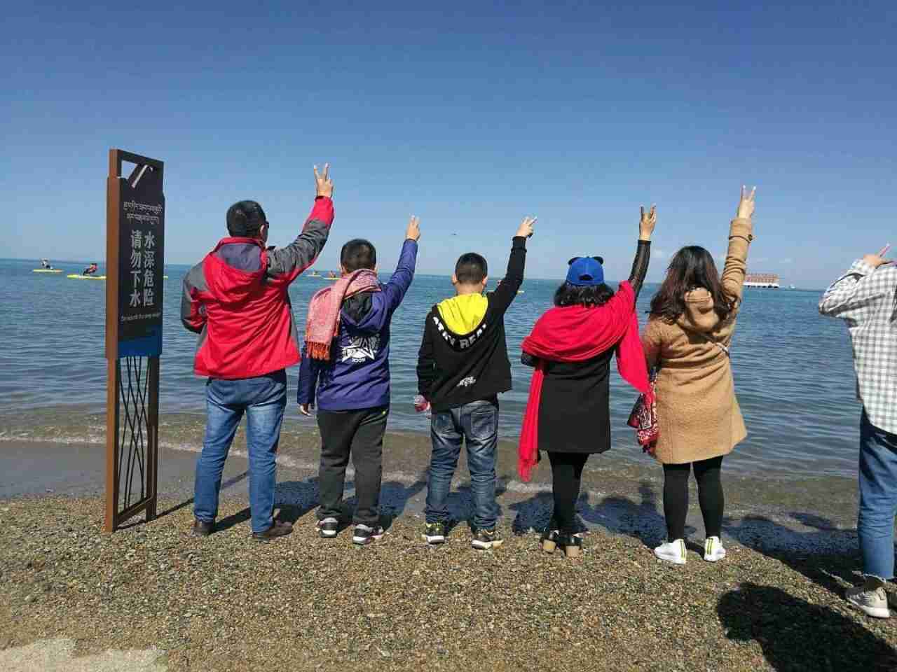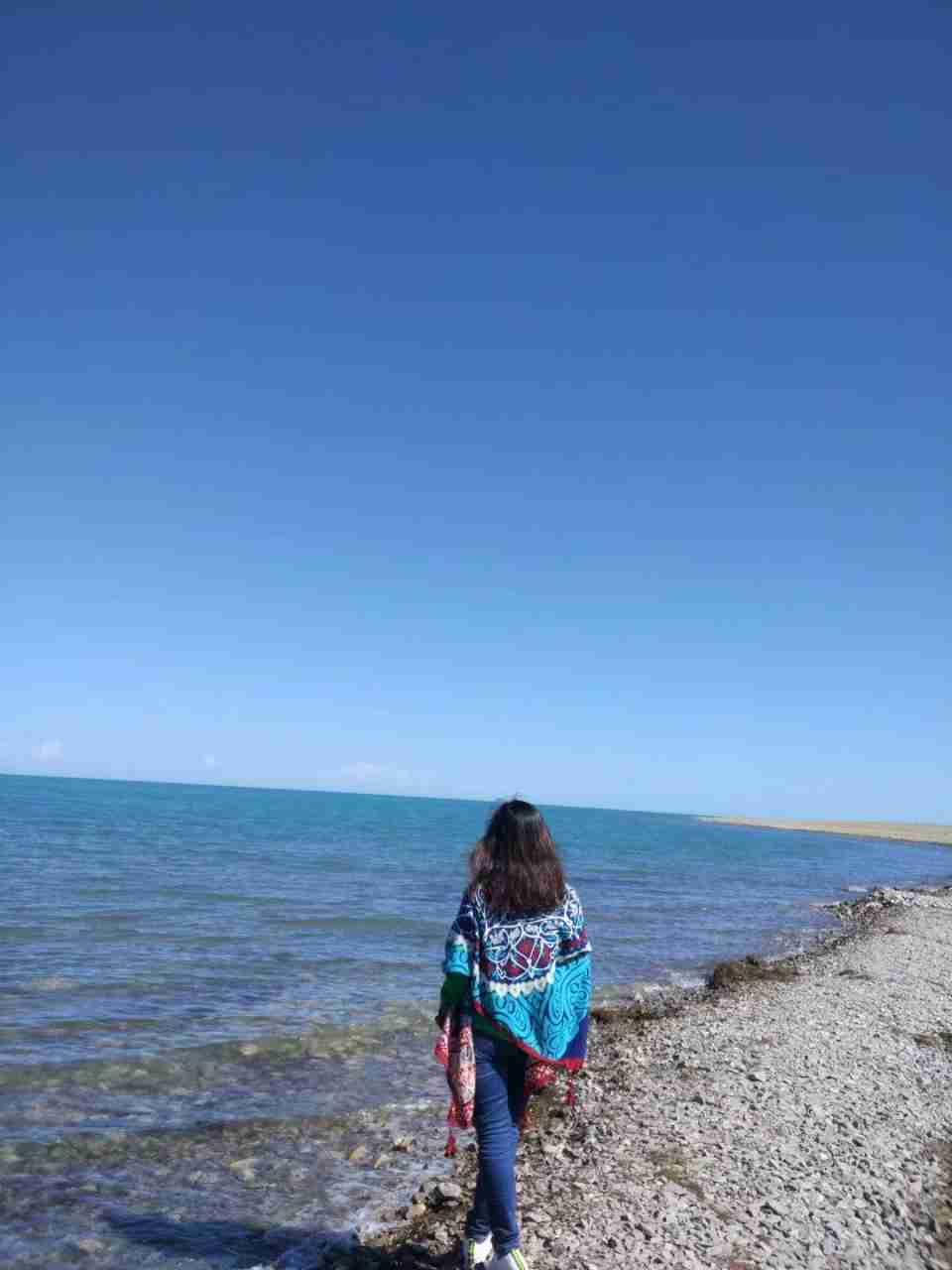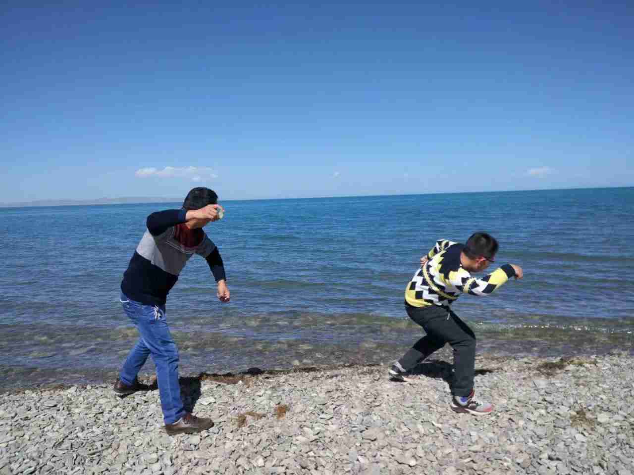 吃過午餐,準備奔向鳥島,車開出半路遠遠發現一處湖邊風景甚好,下來準備去玩。湖是被攔起來的。進去是要收費的。十元一個人,想想也不是太貴。為了美景,給吧。 依舊是太陽很大,但是風很涼的,有點想搓手的感覺。靠近湖邊有一種面朝大海,春暖花開的即視感。湖邊有小小的沙灘,但大多是人工堆砌的堤岸,湖面的美景,仿佛是一幅色彩明麗的油畫,看了使人心曠神怡。一層層白鰱似的浪花,一次次眷戀地撫摸著堤岸。湖面比天空藍的純粹,藍的清澈,藍的靜謐,仿佛能滌蕩人的靈魂,洗盡俗人的眼。碧波連天的湖水,在艷陽下清徹透亮,就像一顆鑲嵌在群山里的藍寶石,美的讓人心無雜念、在這紛擾的塵世間竟然保持著如此純粹的、純凈的美,不愧為神秘的高原明珠。
