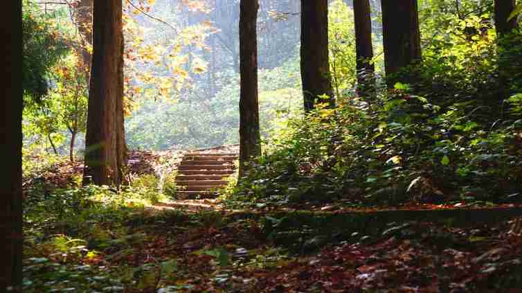 行走在樹林之中,腳下厚厚的落葉上時不時出現斑駁的影子,迷幻的色彩,寧靜的時空,宛如游走在一幅靜止的美麗畫卷之中……
