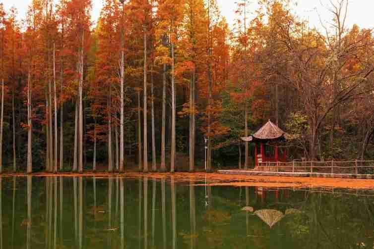 在靖州深深的山坳里,居然隱藏著一片讓人為之驚嘆的水杉林。到了深秋時分,1000余畝水杉林開始變紅,空中俯瞰如一把把撐開的紅傘,非常壯觀。一棵棵水杉樹高聳入云,讓人似乎進入了一個童話般的世界,偶爾掉下一片樹葉,落在頭上、肩上,充滿了詩情畫意……