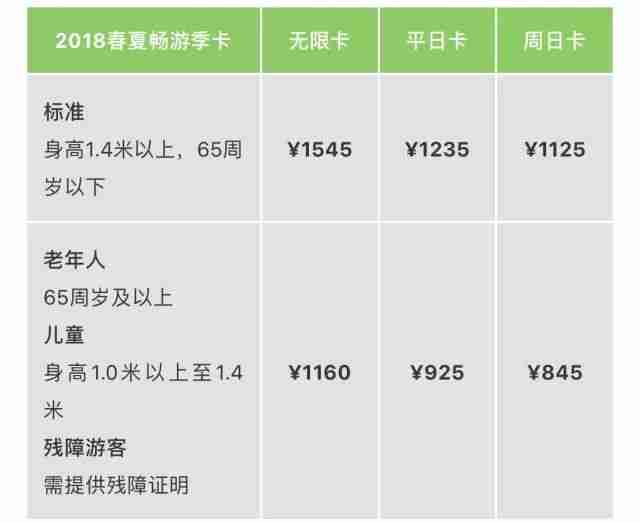 “2018春夏暢游季卡”的完整價(jià)目如下: