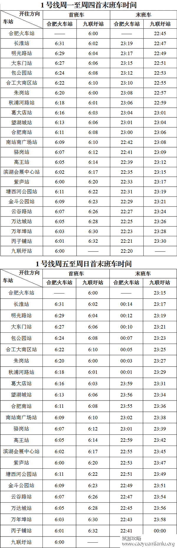 合肥地鐵1號線運營時間表,合肥地鐵1號線幾點開始幾點結(jié)束