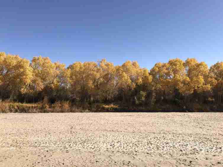秋季青海最美的地方格爾木胡楊林,每年的十月,胡楊就會由濃綠變為金黃,如同蒼茫中燃燒的火焰,似乎將整個沙漠都染成了金色,令人感受到大自然的美麗和生命的頑強。處身此地,面對風骨猶存的枯干半埋在沙里如泣如訴,面對衰老的胡楊無奈的讓風將枝頭的黃葉一陣陣吹去,面對幼小的正在成長的小樹搖擺飄蕩,怎不令人百感交集,蕩氣回腸。