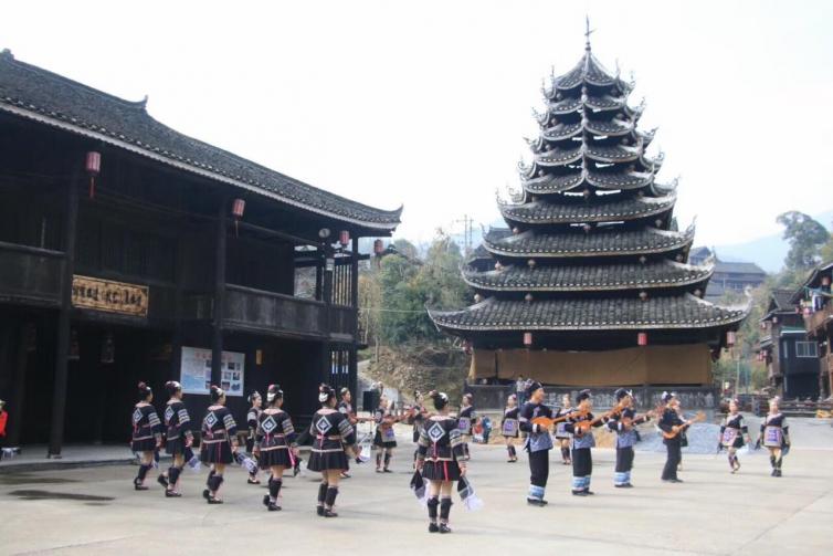 靖州地筍苗寨可以聽大歌,苗族歌鼟為多聲部合唱形式。在侗寨吃“合龍宴”,氣氛一子就上來了。