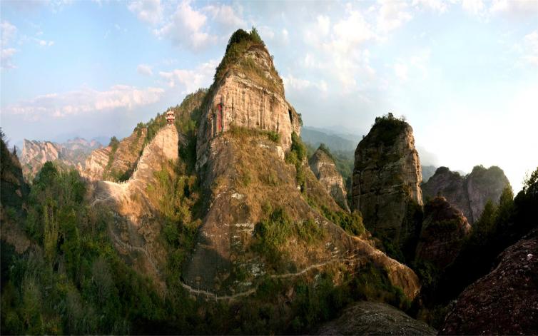 冠豸山:冠豸山屬于丹霞地貌,山雖不高,風景卻秀麗奇特,有號稱陽剛天下第一的石柱和陰柔第一的石門湖石縫。