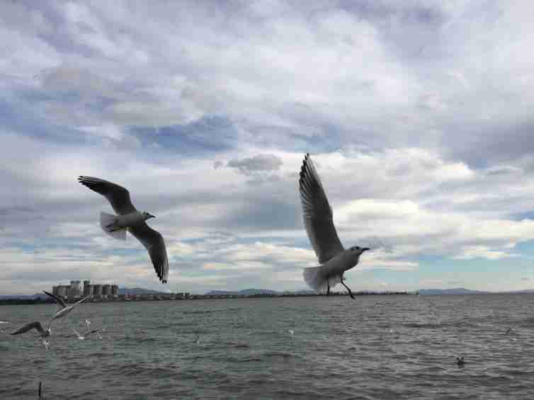 前往滇池大壩,可看到海鷗閑游的身影;或駐足橋頭,匆匆飛過的那一道道驚鷗靚影,約2.5km的長(zhǎng)堤,人在堤上,鷗歇堤坡,以龍門西山為背景,在寬闊的滇池草海舞臺(tái)上,紅嘴鷗在碧藍(lán)的天空中正無(wú)時(shí)無(wú)刻地盛大演出,來一次浪漫的邂逅又何妨。