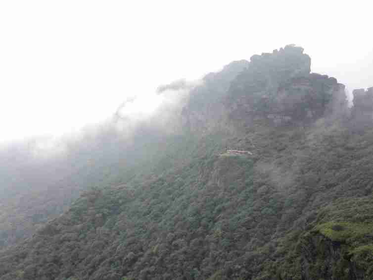 從梵凈山景區(qū)門(mén)口坐觀光車到索道,然后坐索道上去后向前走到頂就是著名的“蘑菇石”。它如名字一樣,上大下小,形似蘑菇。高約十米,在山上矗立了10億年之久。這里是拍照留念的好地方。山頂?shù)淖筮吺羌t金云頂,右邊是舊金頂。山路較陡,建議選擇登山鞋、戶外鞋前行。而且山上天氣變幻莫測(cè),要備好防寒的衣褲。