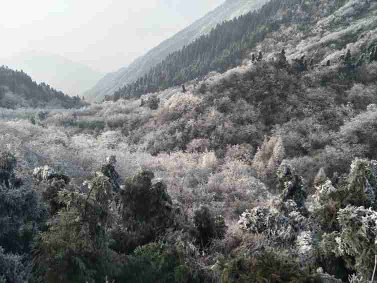 湖南永州陽明山國家森林公園,也有霧凇奇觀海拔1200米以上會(huì)形成了大面積的霧凇,白色晶瑩的霧凇把這里裝扮成一個(gè)冰雪童話世界。