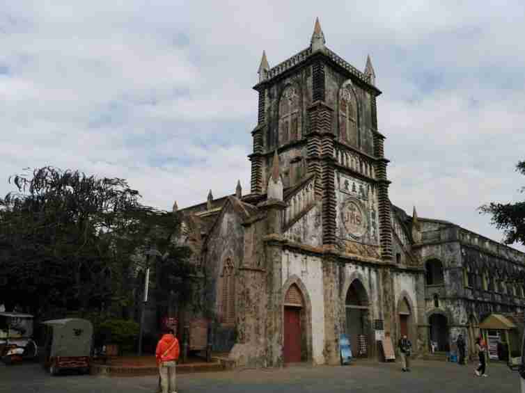 從五彩灘騎15分鐘的電動車,便是達潿洲島的主要地標盛塘天主教堂,它建于清朝是晚清時四大天主教堂之一,同時它是典型的哥特式建筑,建筑材質就是珊瑚石塊十分漂亮。