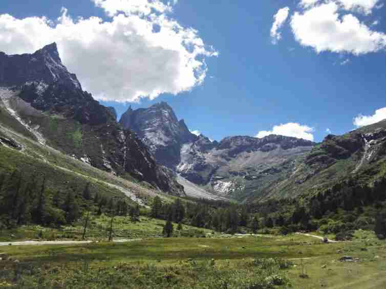 巴郎山的上下山路和埡口地區,海拔超過4000米,山高坡陡,但其景色極為美麗,白云如海、雪山連綿、草甸起伏,真可謂是“無限風光在險峰”。