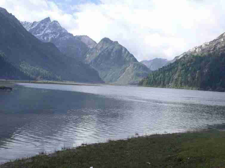 在扎金甲博神山懷抱下,是康巴第一圣湖—措普湖。松耳石般碧綠的措普湖面向遼闊的章德大草原,三面是杉柏森森的原始森林。