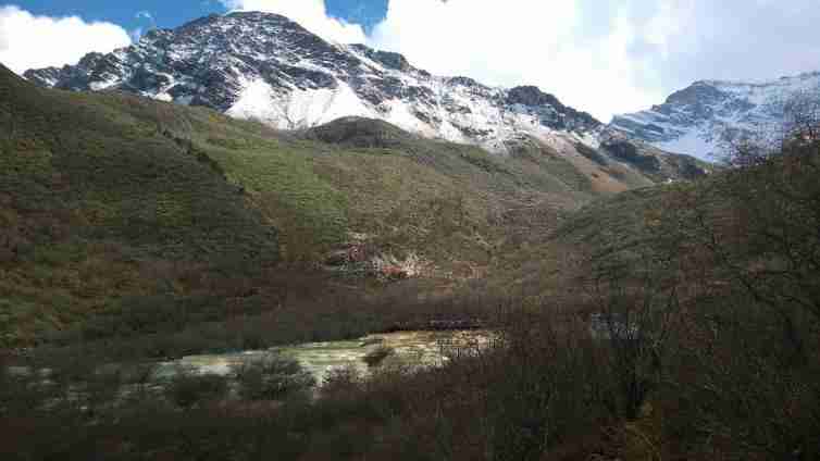 泉華灘海拔約4000米,屬于高山河谷草甸地貌,是一種并不多見的喀斯特地形,也許去過黃龍的蜂蜂會覺得眼前的鈣化池似曾相識,但泉華灘更顯神秘美麗。她藏匿于一個三面環山的凹谷之中,從另一個山頭傾斜下來大片的白色鈣化土,延伸到谷底后便變化出四層五彩的鈣化池,宛如仙境。東南面是貢嘎山,在泉華灘觀看蜀山之王之稱的貢嘎山是絕佳的位置。相比于黃龍,泉華灘更原始偏僻,游客很少,而且可觀賞蜀山之王-貢嘎山。