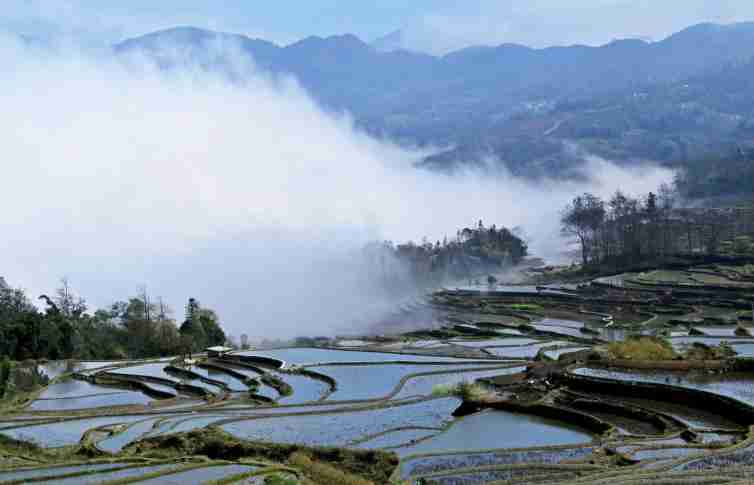 這里緊挨著青山漁村,以茶田和葡萄藤為主,還栽有零星油菜花。沿盤山公路可以直抵山下的漁村腹地,沿途小路彎曲如牛腸,考驗(yàn)駕駛技術(shù)。