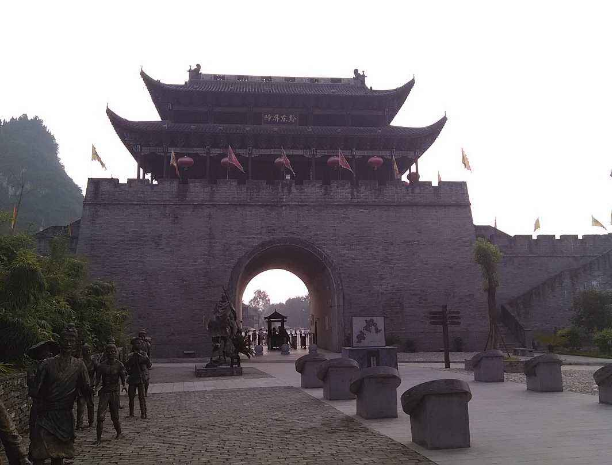 大明邊城景區(qū),劃分為邊城廣場演藝區(qū)、邊城市井文化區(qū)、邊城軍事體驗區(qū)、水師龍舟訓練營、水戰(zhàn)樂園區(qū)、大明水寨錦江漁村、大明酒莊等八大文化體驗區(qū)塊,涵蓋“吃住行游購娛”等旅游功能六要素,包含九龍洞府、軍營體驗、斜屋趣窺、怪屋、王府魅影、錦江漁村等數(shù)十個游玩體驗景點,致力于打造國家AAAAA級旅游景區(qū)。該景區(qū)以明“史”為據(jù),以明“軍事”為主脈,以貴州多民族融合的歷程為背景,以多元共生的“邊城文化”為內涵,全面展示貴州獨特而豐富多彩的歷史文化的大型歷史文化綜合景區(qū)。景區(qū)于2012年獲批國家AAAA級景區(qū)和貴州省首批文化產(chǎn)業(yè)示范基地。