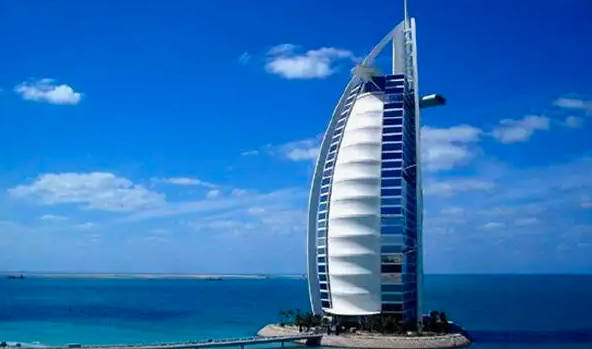 在迪拜王儲的提議之下,知名企業家Al-Maktoum 投資興建了美侖美奐的Burj Al-Arab酒店,也即我們熟悉的帆船酒店。 酒店的豪華程度令人嘆為觀止,評論家們特地為他定了一個七星級標準,酒店光裝飾就用了27噸黃金,到過這里之后, 才能真正體會到什么叫做金碧輝煌。