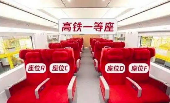 1、高鐵一等座座位編號為A、C、D、F四個位置,A、F為靠窗位置,C、D為過道位置。