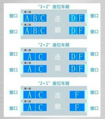 2、高鐵二等座座位編號為A、B、C、D、F五個位置,A、F為靠窗位置,C、D為過道位置,B為中間位置。號